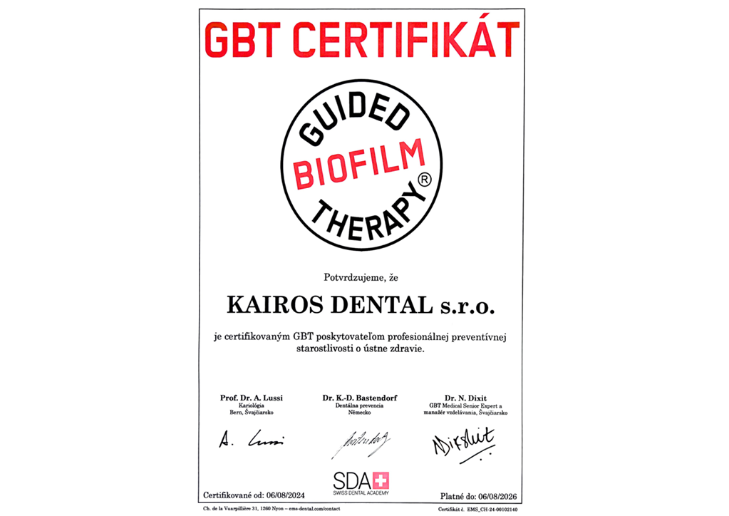 GBT® minimalizuje invazívne zákroky, podporuje dlhodobé zdravie zubov a ďasien, a zároveň zvyšuje efektivitu preventívnej starostlivosti.